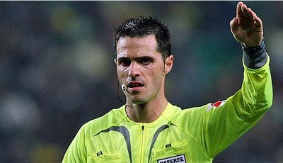Não assinalou o primeiro agarrão de Edgar a Fucile, depois não teve coragem para assinalar a grande penalidade cometida por Fucile.